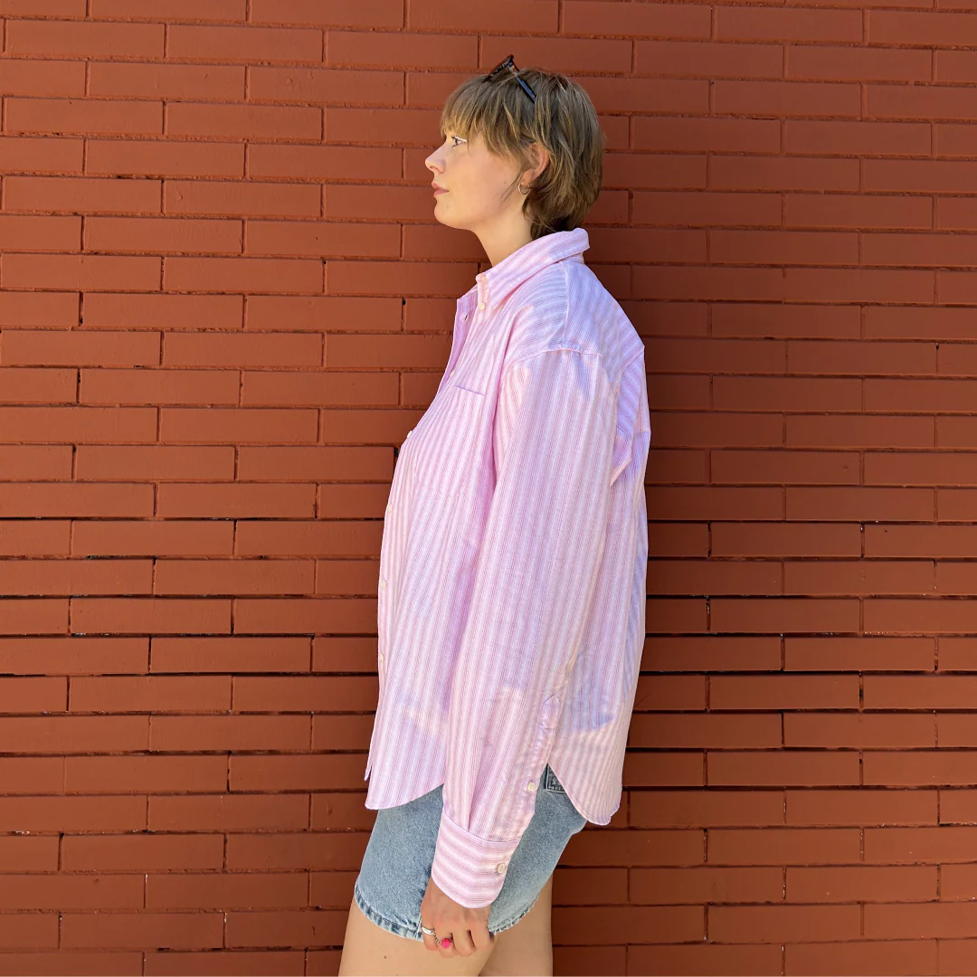 Dein Power Piece für deinen Alltag 🩷 Ob mit Bikini am Strand oder mit Wollpullover, die gestreifte Hemdbluse ist ein richtiger Allrounder fürs ganze Jahr. Der Stick im Kragen erinnert dich zudem an deine Superpower - denn die ist immer mit dabei.